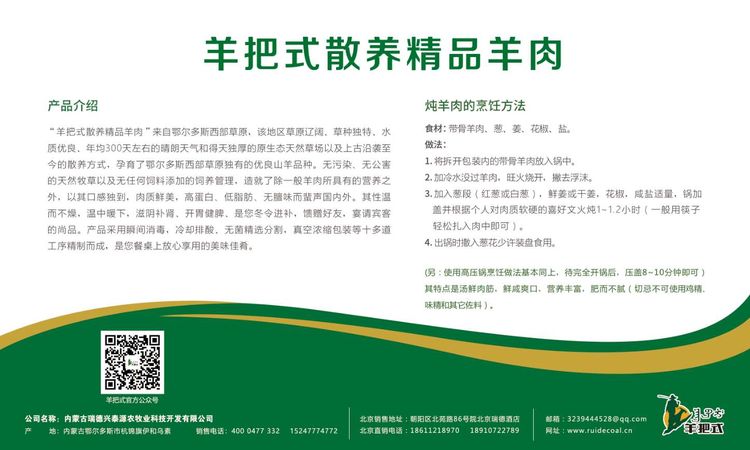 內(nèi)蒙古瑞德興泰源農(nóng)牧業(yè)科技開發(fā)有限公司于 2016 年成立, 是一家集牛羊肉養(yǎng)殖、精細(xì)加工、冷鮮物流及配送銷售于一體的現(xiàn)代農(nóng)牧業(yè)科技公司,致力于推廣“羊把式”文化和“羊把式” 牌牛羊肉系列產(chǎn)品,打造“羊把式”匠心品牌。