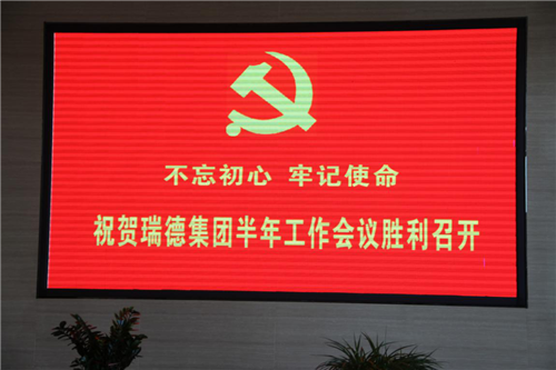 2019年7月11日,瑞德集團全體人員齊聚一堂,召開2019年半年工作會議。就上半年集團公司以及各分子公司的生產(chǎn)、經(jīng)營、銷售、安全保障等情況進行匯報,分析工作中存在的問題以及提出相應(yīng)的解決方案;對下半年的工作做出宏觀規(guī)劃及具體工作的實施計劃;集團領(lǐng)導(dǎo)對今后的工作提出指導(dǎo)性意見。
